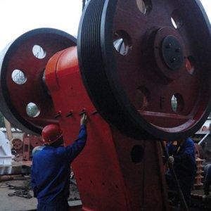 顎式破碎機(jī)俗稱顎破,又名老虎口。由動(dòng)顎和靜顎兩塊顎板組成破碎腔,模擬動(dòng)物的兩顎運(yùn)動(dòng)而完成物料破碎作業(yè)的破碎機(jī)。顎式破碎機(jī)在礦山、建材、基建等部門主要用作粗碎機(jī)和中碎機(jī)。按照進(jìn)料口寬度大小來分為大、中、小型三種,進(jìn)料口寬度大于600MM的為大型機(jī)器,進(jìn)料口寬度在300-600MM的為中型機(jī),進(jìn)料口寬度小于300MM的為小型機(jī)。顎式破碎機(jī)結(jié)構(gòu)簡單,制造容易,工作可靠。顎式破碎機(jī)的工作部分是兩塊顎板,一是固定顎板(定顎),垂直(或上端略外傾)固定在機(jī)體前壁上,另一是活動(dòng)顎板(動(dòng)顎),位置傾斜,與固定顎板形成上大下小的破碎腔(工作腔)?;顒?dòng)顎板對著固定顎板做周期性的往復(fù)運(yùn)動(dòng),時(shí)而分開,時(shí)而靠近。分開時(shí),物料進(jìn)入破碎腔,成品從下部卸出;靠近時(shí),使裝在兩塊顎板之間的物料受到擠壓,彎折和劈裂作用而破碎。